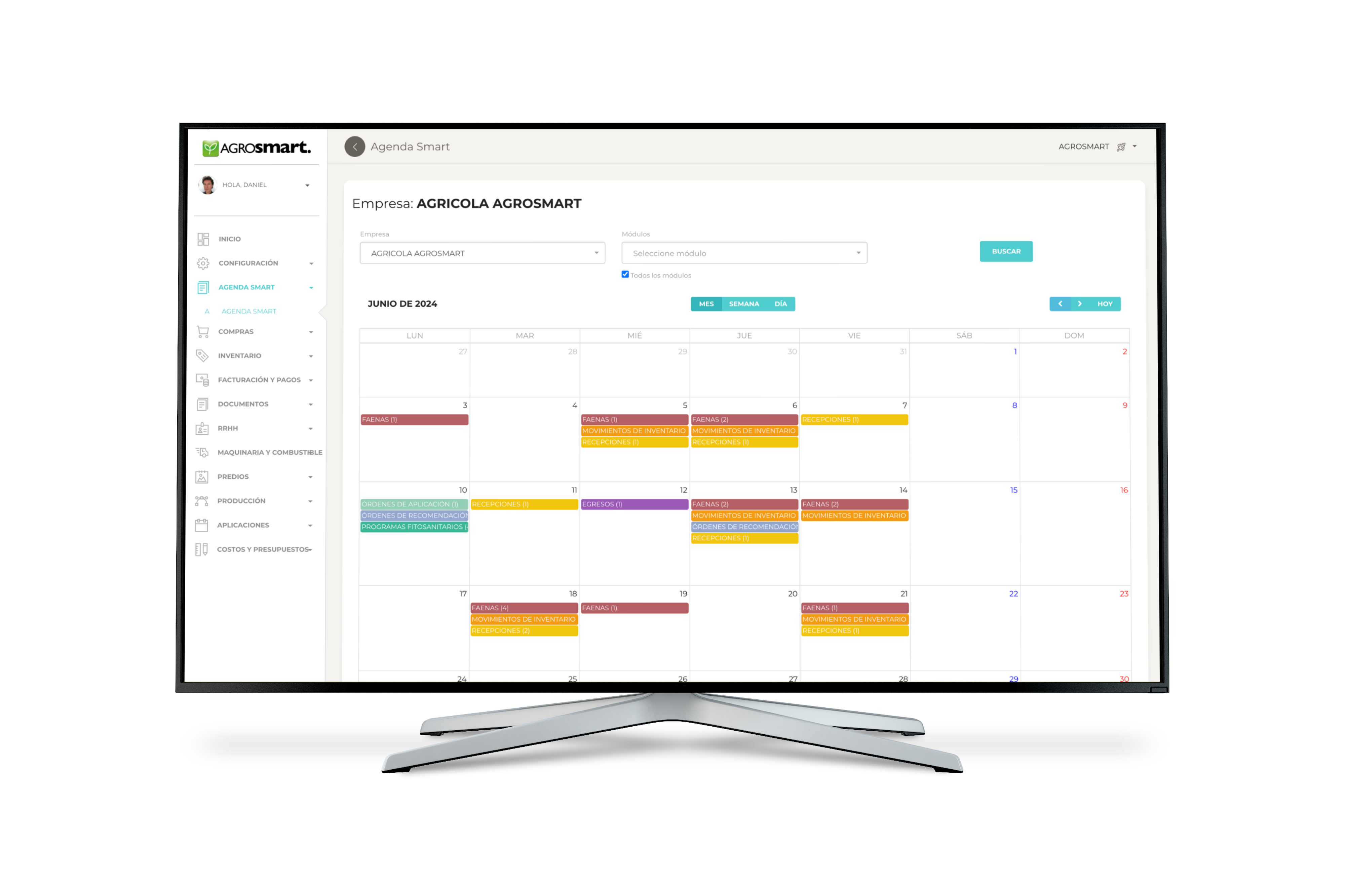 Agenda Smart, te da la bienvenida al sistema, permitiéndote ver cada ingreso de cada en cada módulo con la simpleza de una vista calendario.