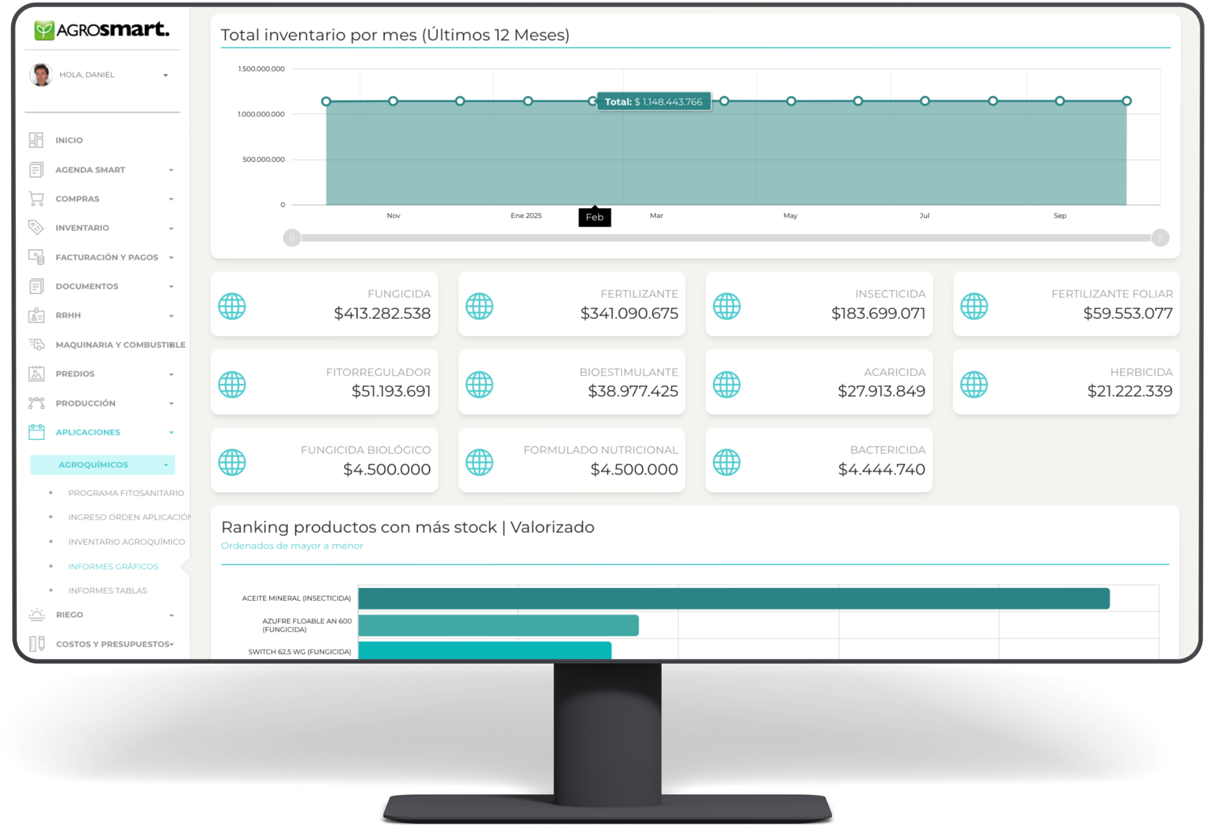 Con AGROsmart, tu menú de agroquímicos siempre está actualizado, ordenado y listo cuando lo necesites.