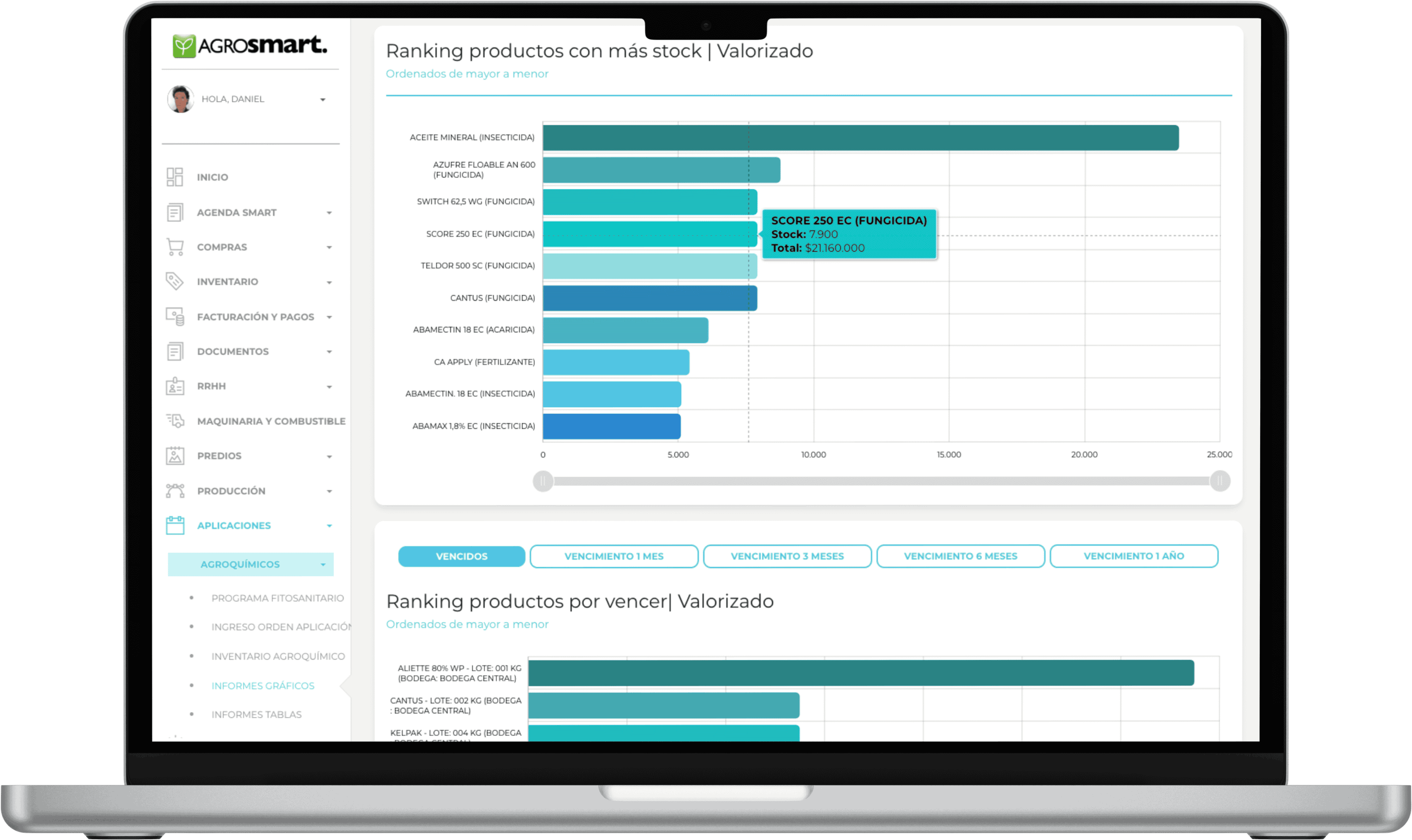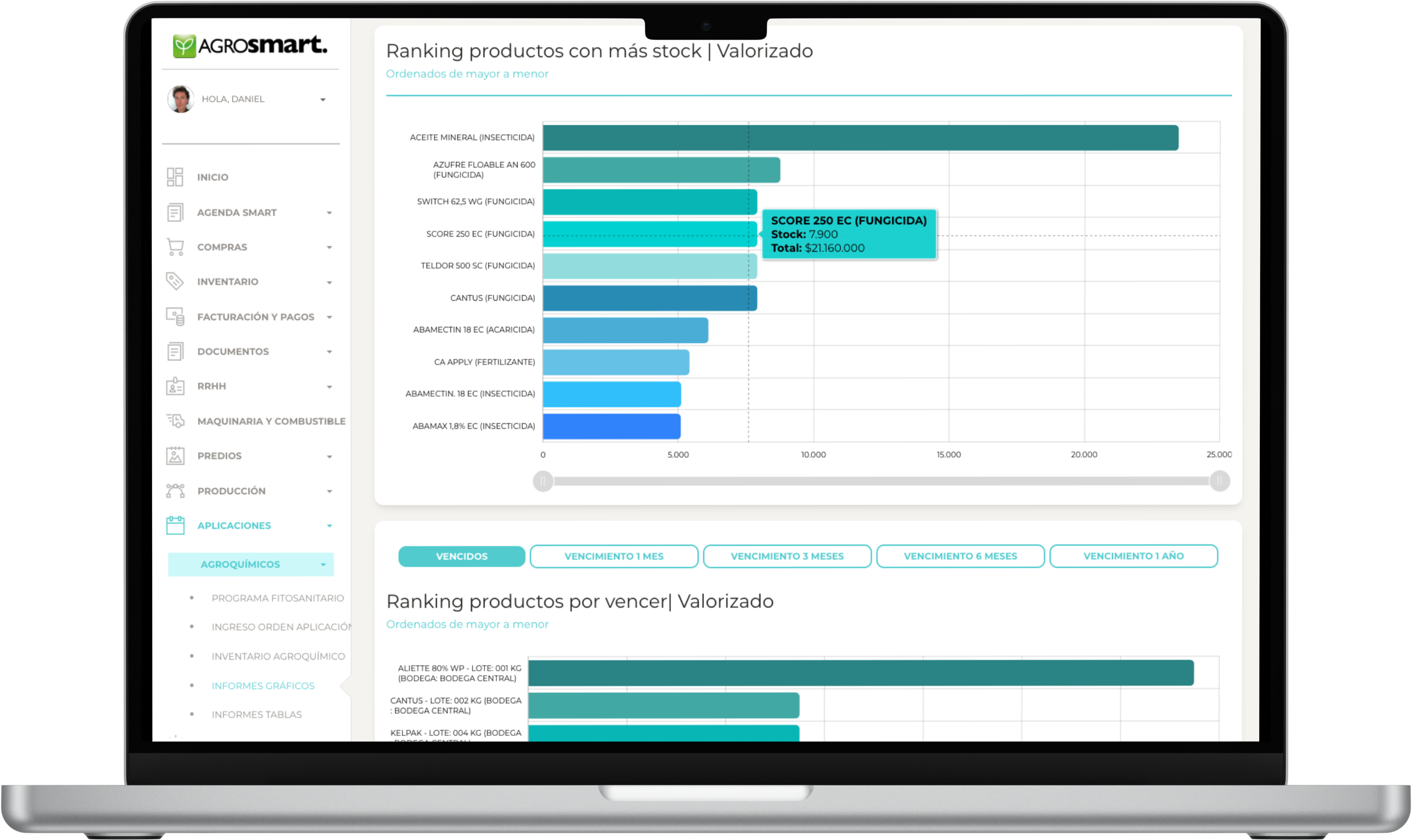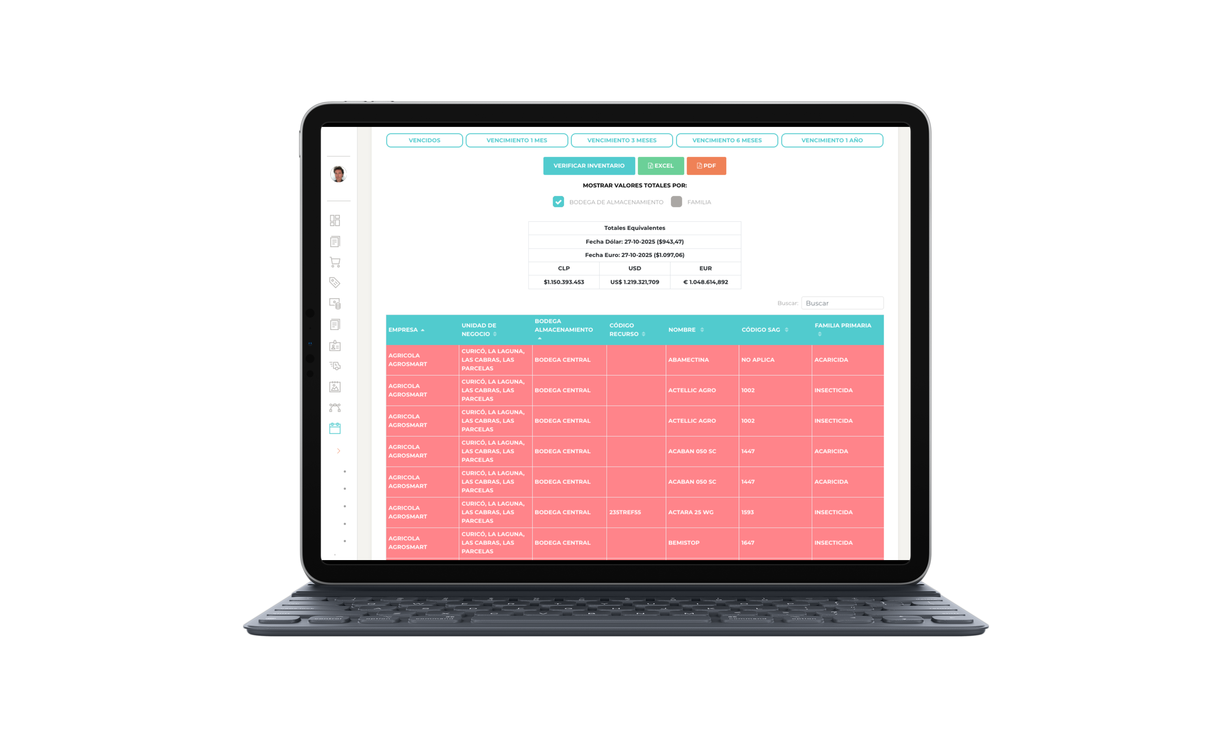 Con un práctico método, AGROsmart, te alerta de tus productos vencidos y por vencer. Filtros de productos vencidos y por vencer, sumado a notificaciones automáticas mediante envío de correos electronicos.