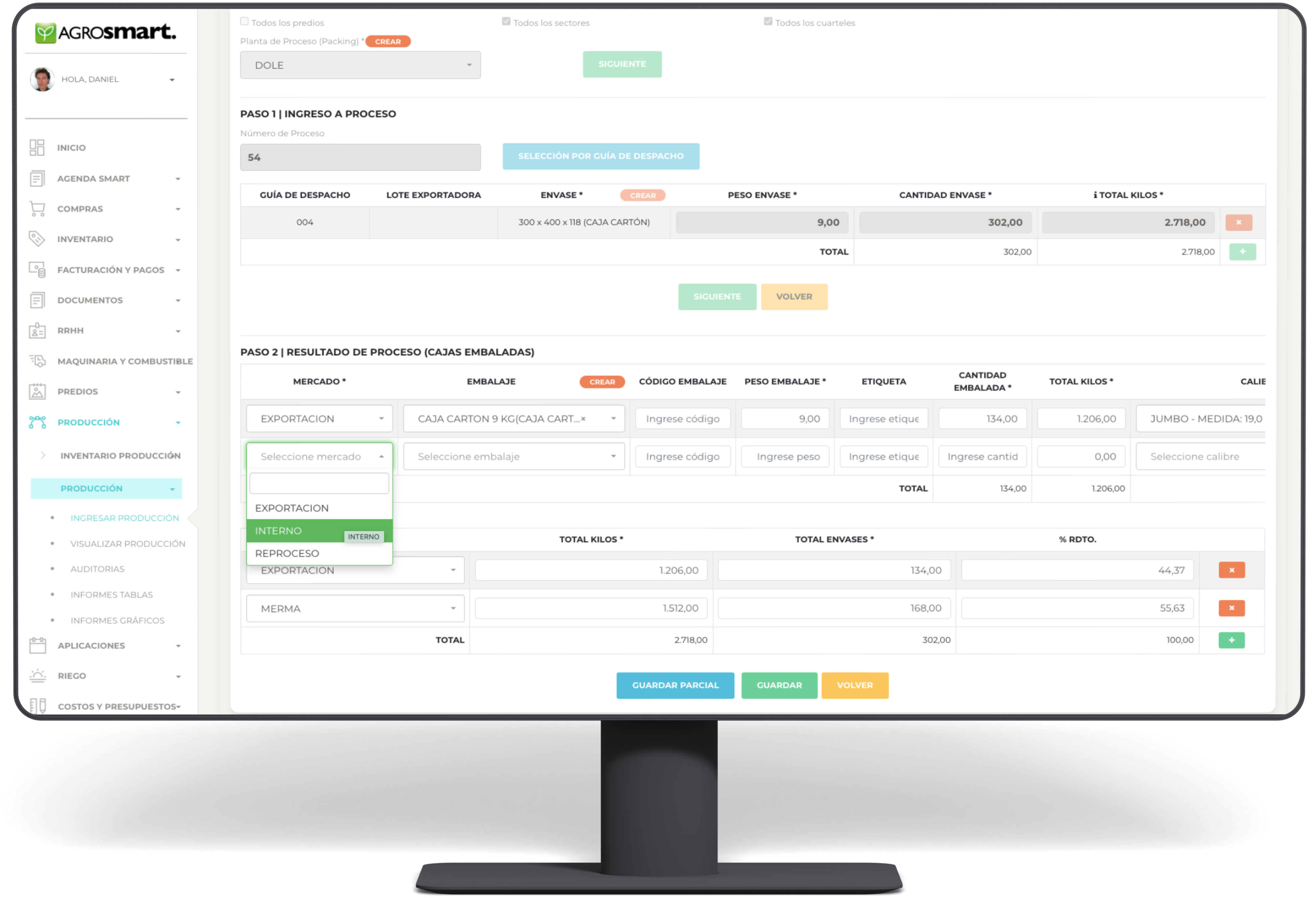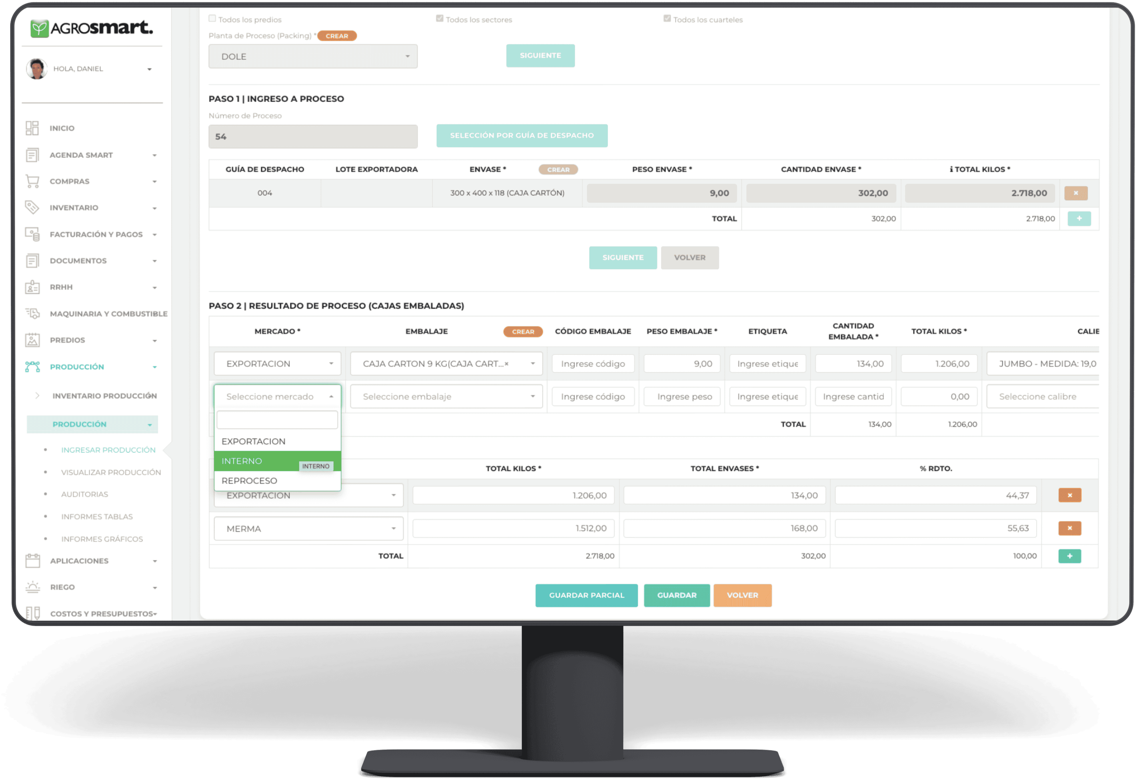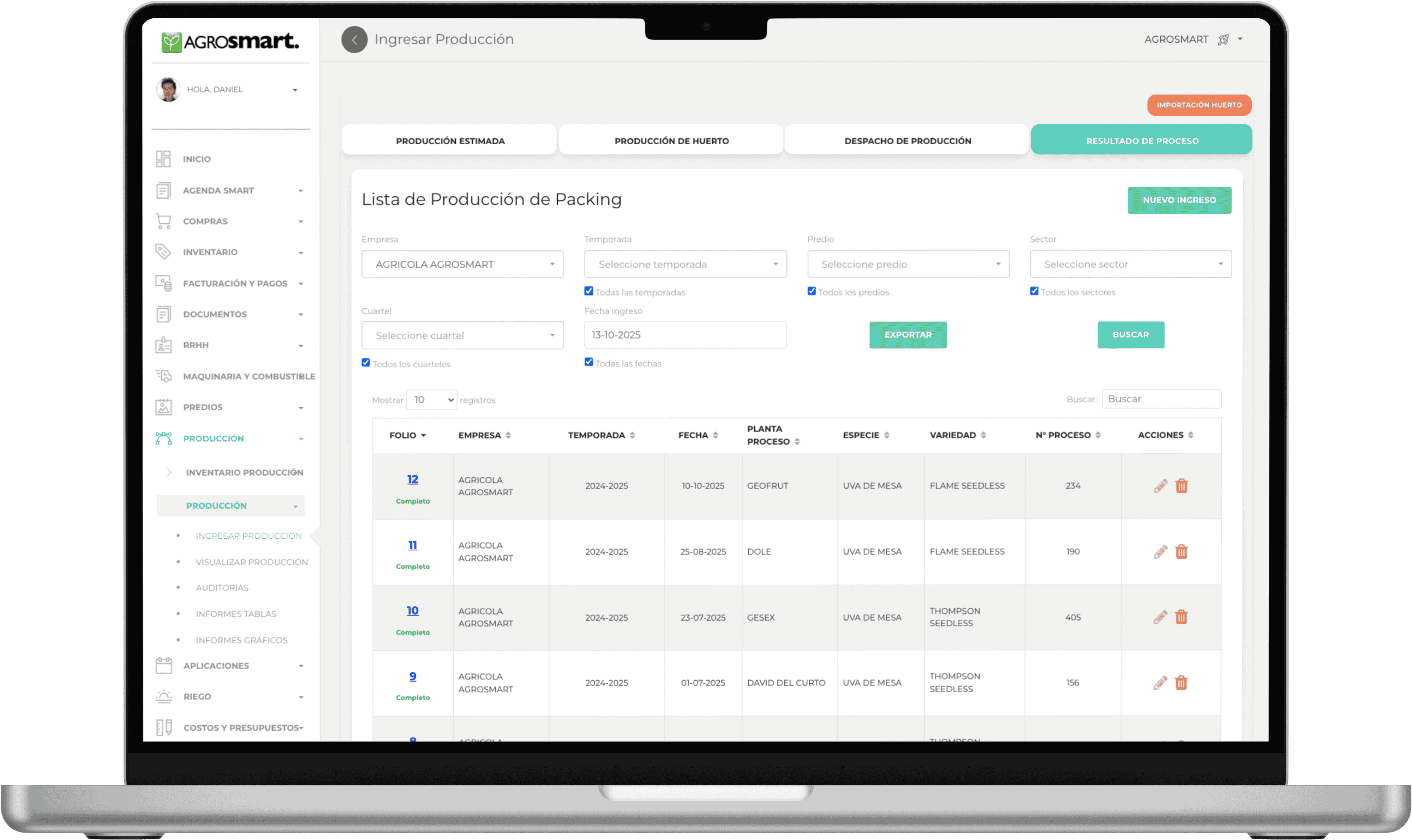Registra en AGROsmart toda tu producción de Resultado de Proceso de Packing.