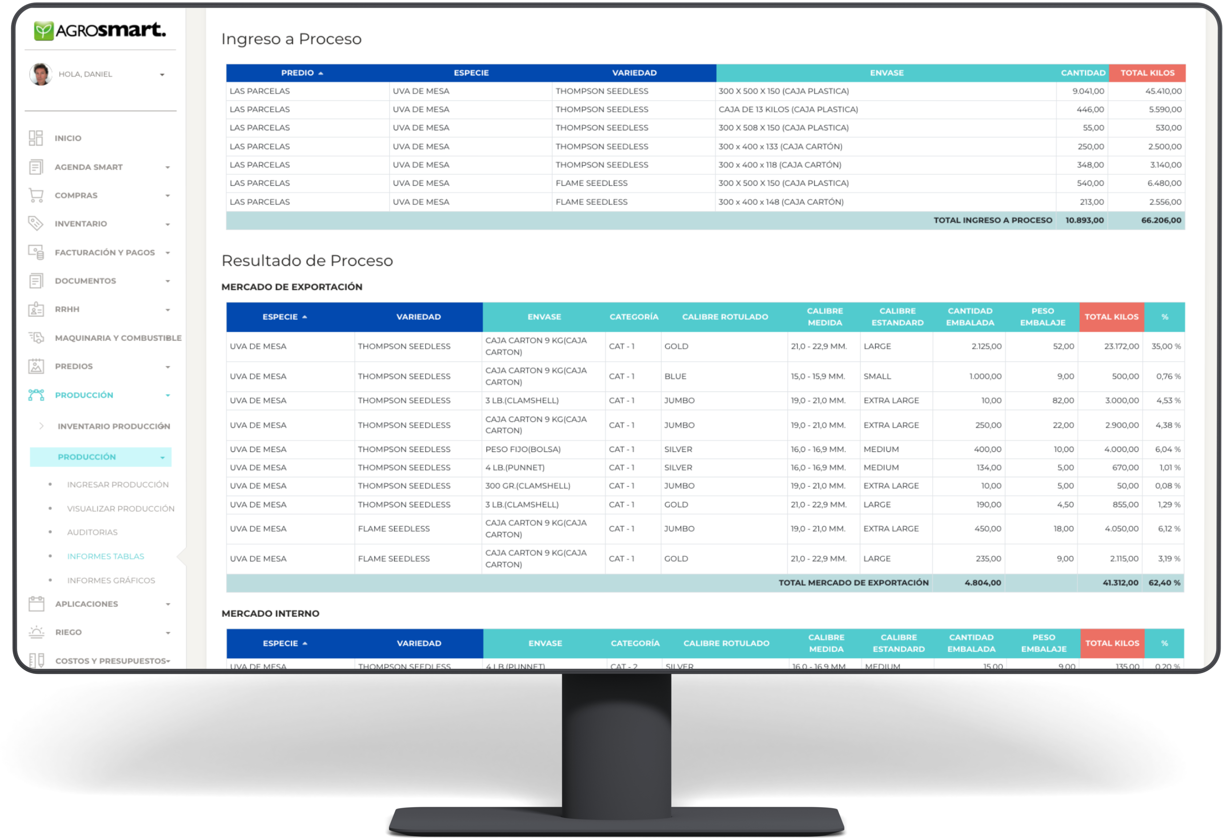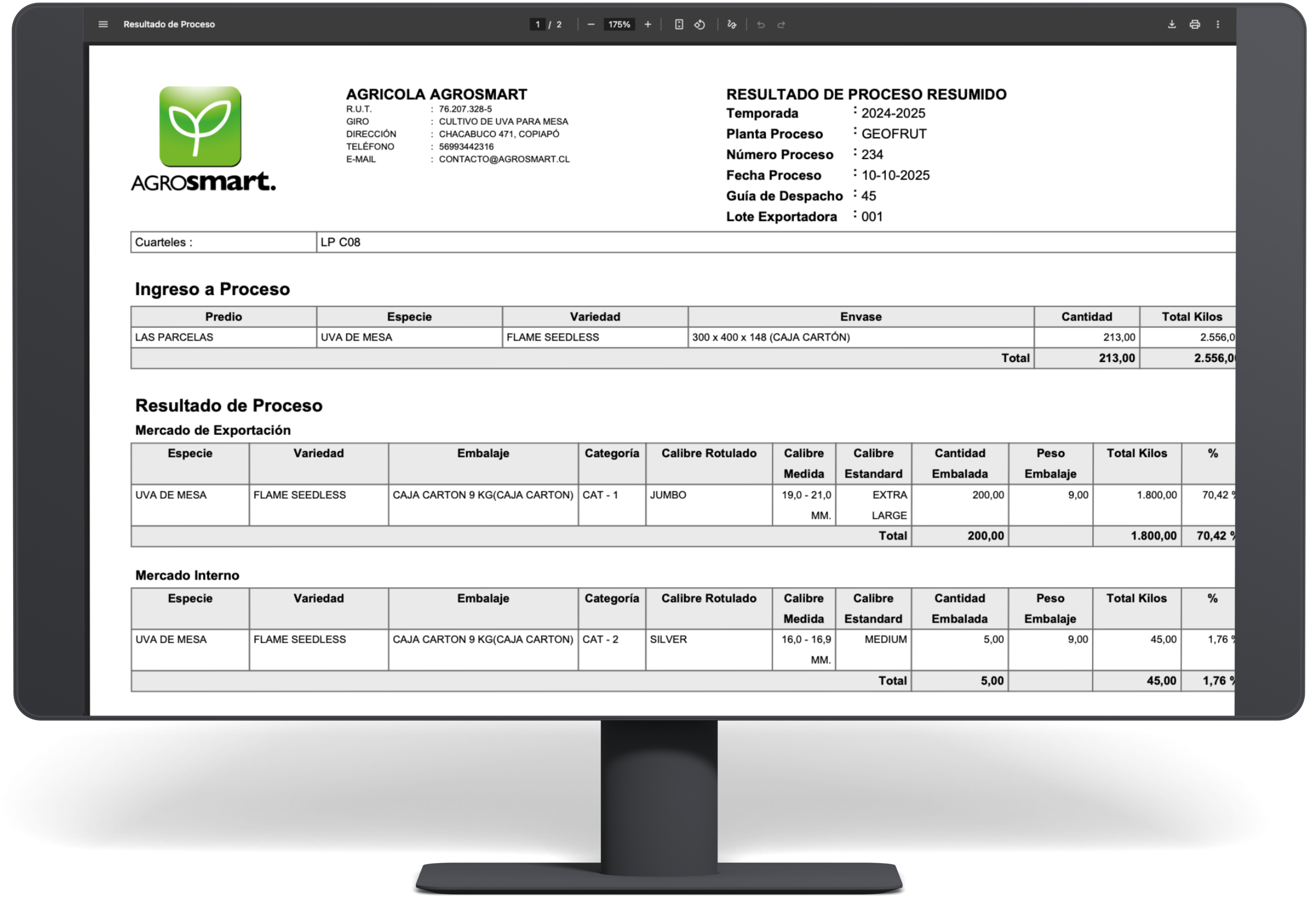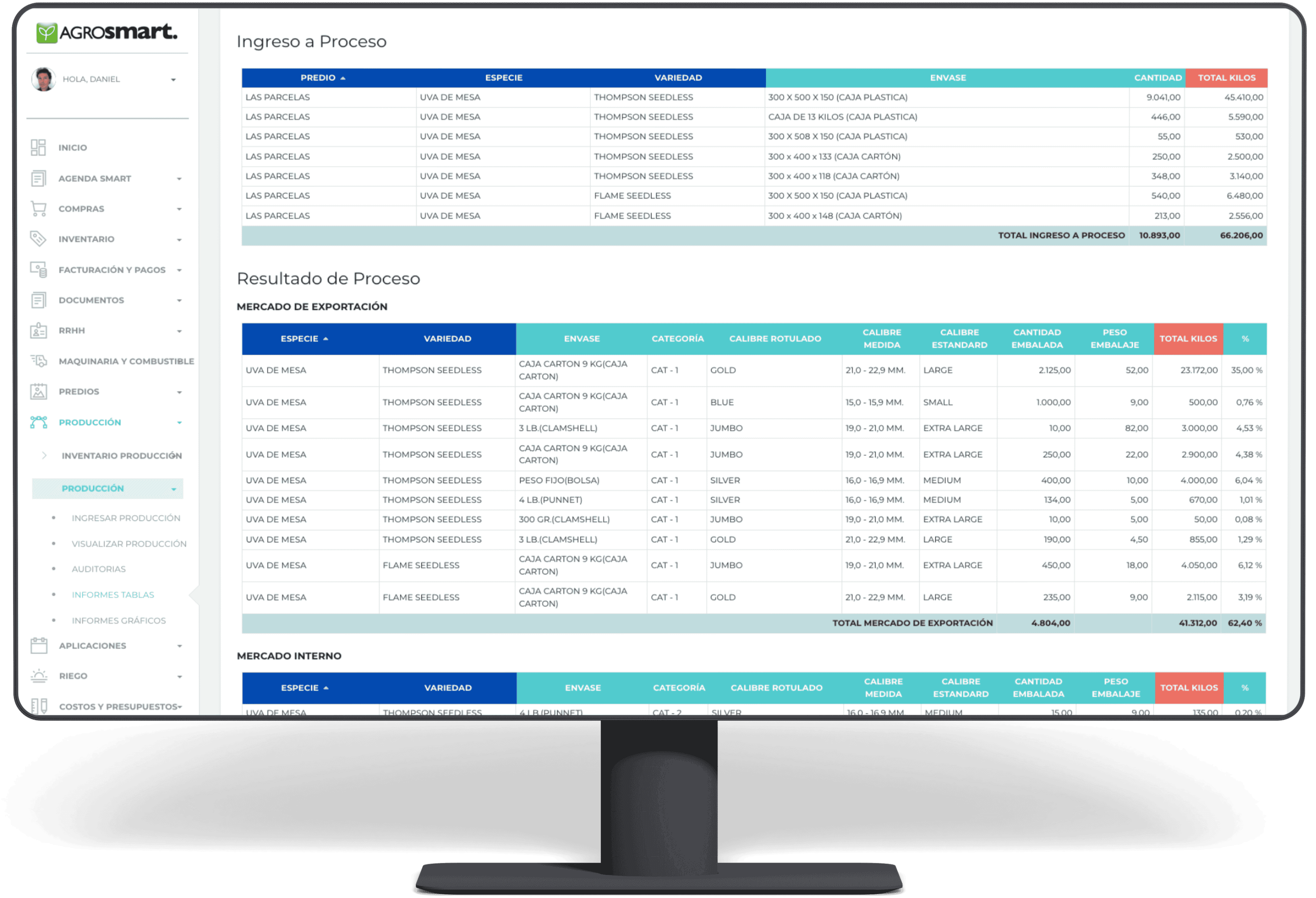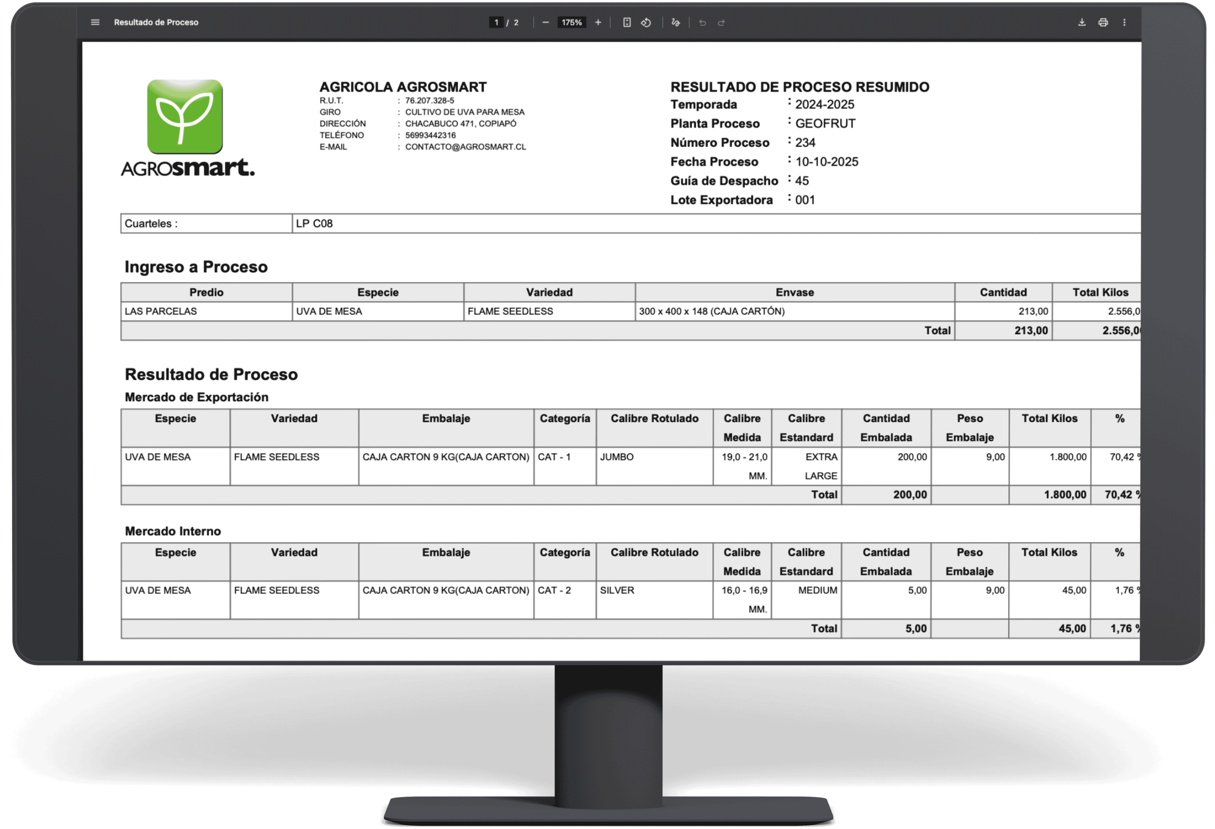 Registra en AGROsmart toda tu producción de Resultado de Proceso de Packing.